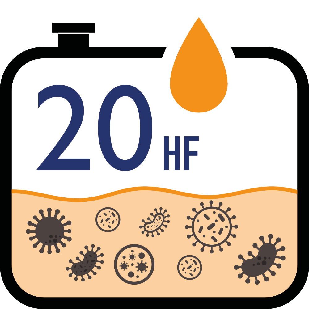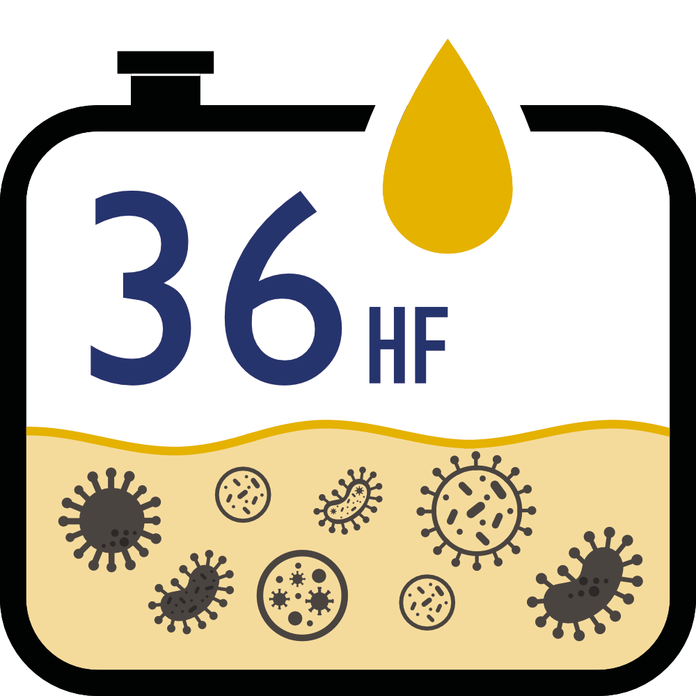 Gli attivi HF si disperdono più rapidamente nella matrice idrocarburica, agendo meglio sia nella fase acqua che carburante.