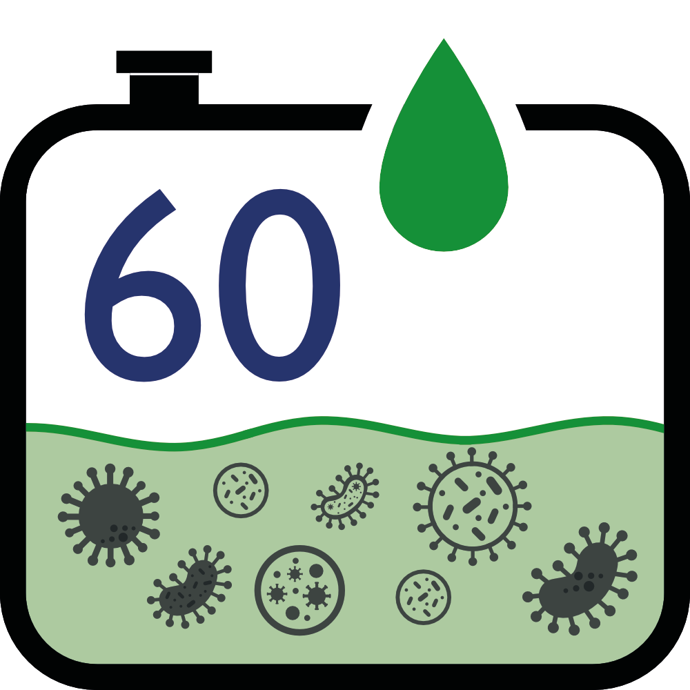 Elimina la carica microbica (batteri aerobici, anaerobici, funghi, lieviti) già nelle prime ore → nei test di laboratorio si osserva un abbattimento superiore al 90%.