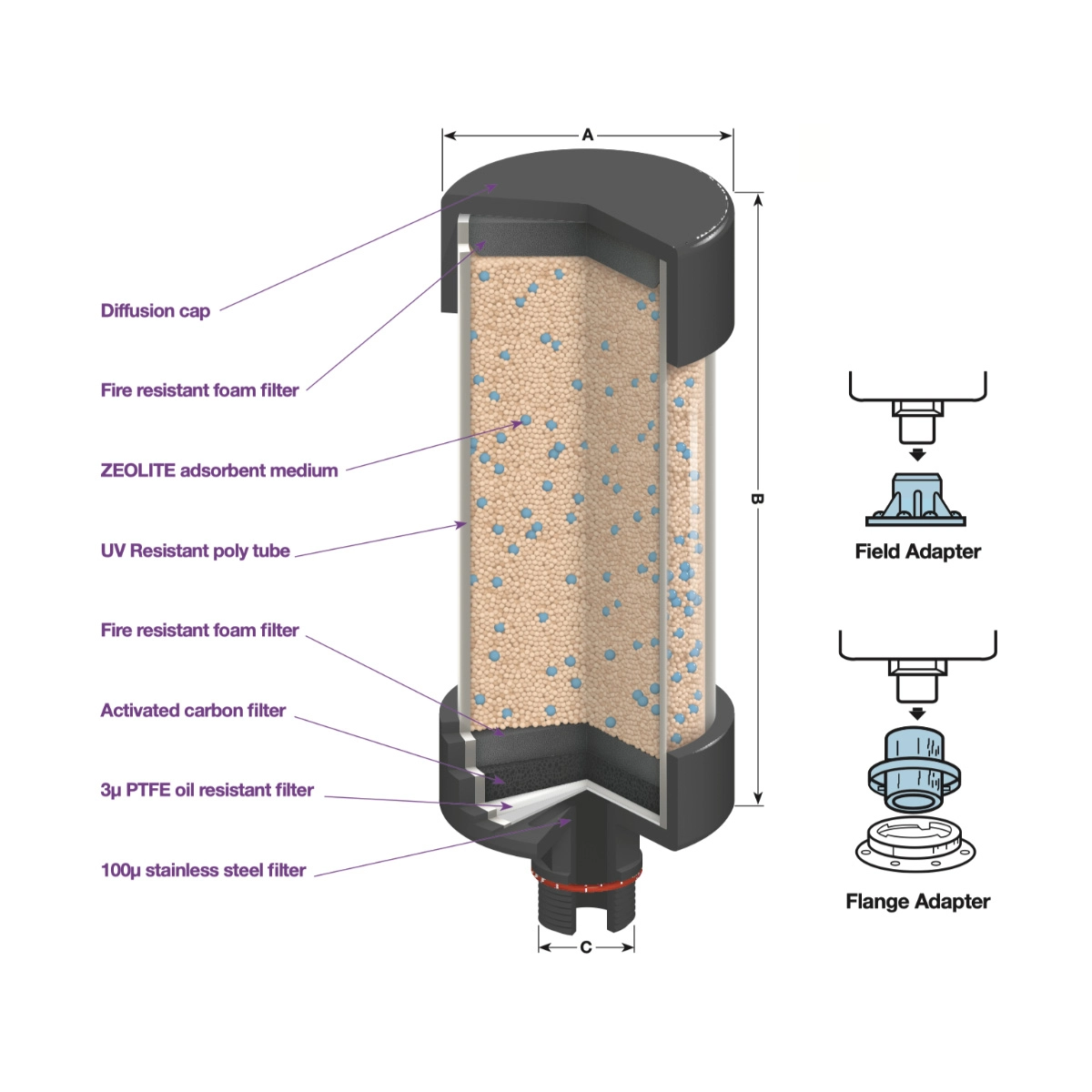 Sfiato igroscopico progettato per massimizzare l'affidabilità del sistema e la durata dell'olio in un'ampia gamma di applicazioni.
