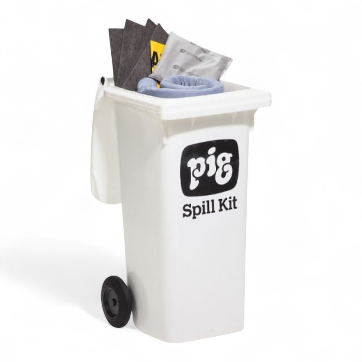 Il Kit PIG® in contenitore mobile – versione universale è perfetto per una gestione rapida ed efficiente degli sversamenti. Il robusto contenitore da 120 L in polietilene, dotato di ruote di gomma da 200 mm e maniglie, permette un facile spostamento lungo corridoi stretti. Ideale per officine, magazzini e aree operative sia interne che esterne.