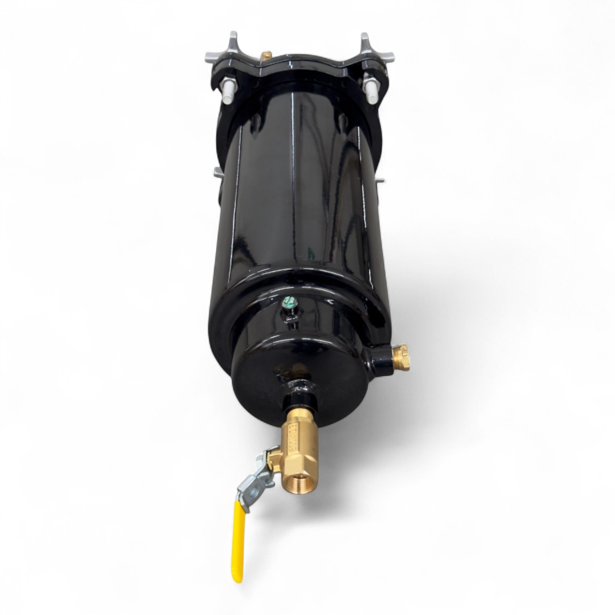 Manutenzione Rapida: Il collare a bloccaggio rapido permette di allentare manualmente i bulloni, ruotare e abbassare il contenitore per una sostituzione della cartuccia in pochi minuti.