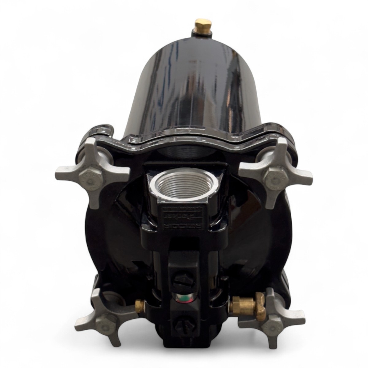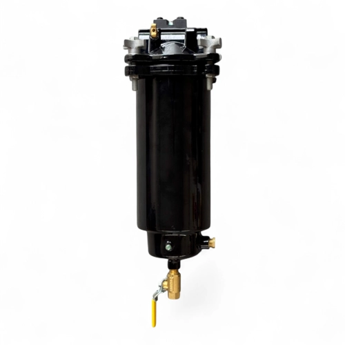Il Parker Velcon VF-65 opera attraverso una tecnologia a singolo elemento coalescente ad alta efficienza. Il carburante entra attraverso le connessioni da 1.5" NPT e attraversa la cartuccia serie OS, che aggrega le micro-gocce d'acqua (coalescenza) e blocca le particelle solide fino a 0.5 micron. L'acqua separata precipita sul fondo della ciotola, dove può essere monitorata tramite il vetro spia (optional) e drenata manualmente. Il sistema è dotato di un indicatore visivo d'intasamento che segnala con precisione quando è necessario procedere al cambio della cartuccia.