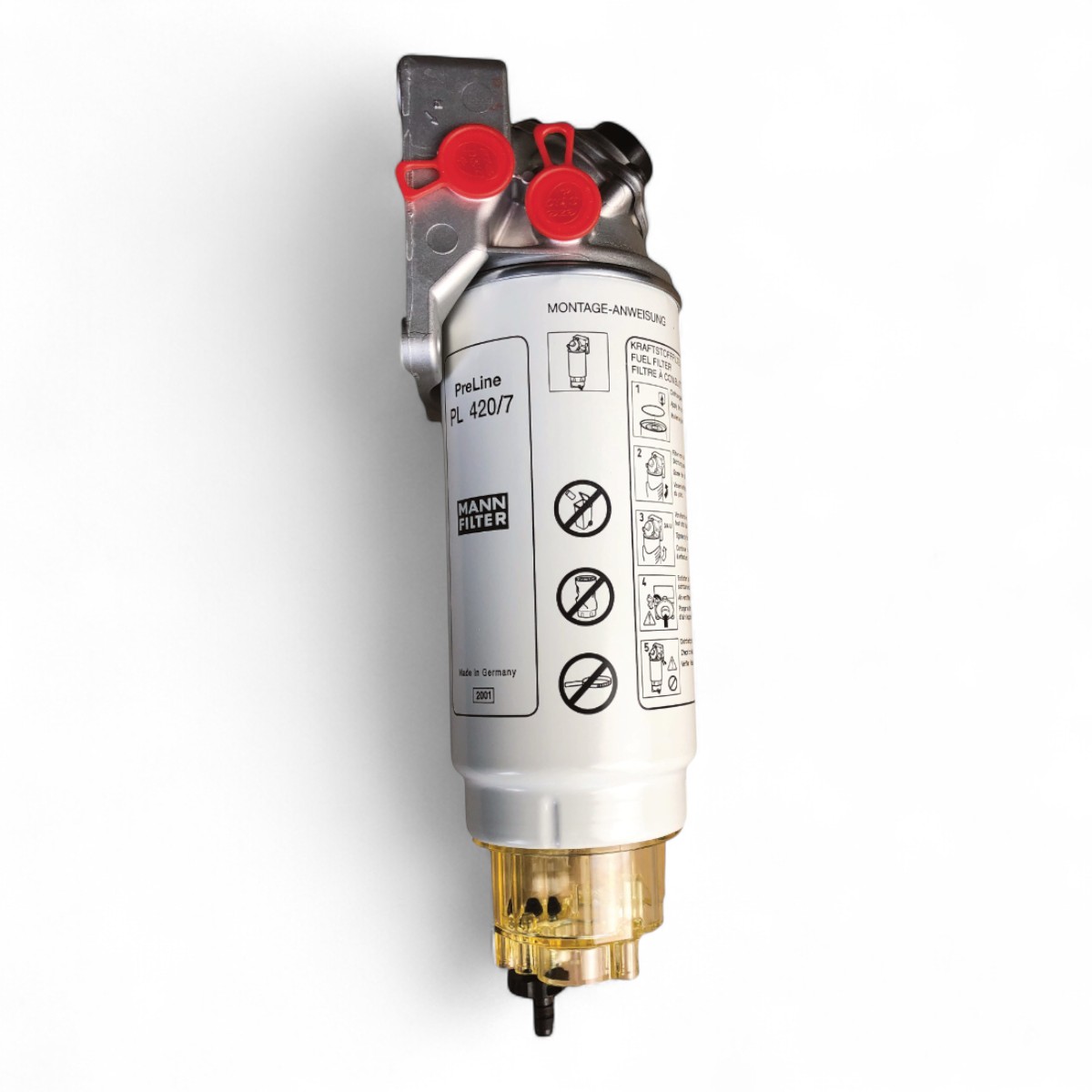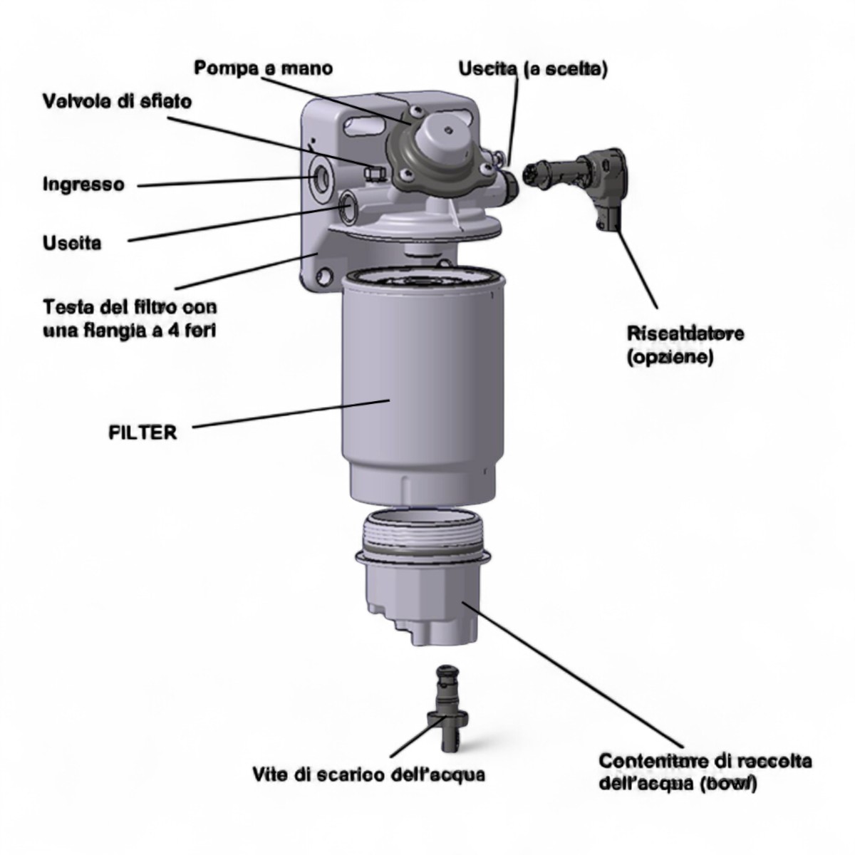 Il sistema di filtraggio PreLine è concepito per tutti i motori a diesel con una pressione massima del fluido pari a 4 bar. Normalmente viene applicato nella zona del circuito a bassa pressione tra il serbatoio e la pompa di mandata del carburante. In questa sede, per via della sua struttura a più strati, il filtro separa l'acqua e le particelle più fini dal carburante per motori diesel che lo attraversa. L'acqua separata viene raccolta nel contenitore sotto il filtro e viene fatta defluire attraverso la vite di scarico.