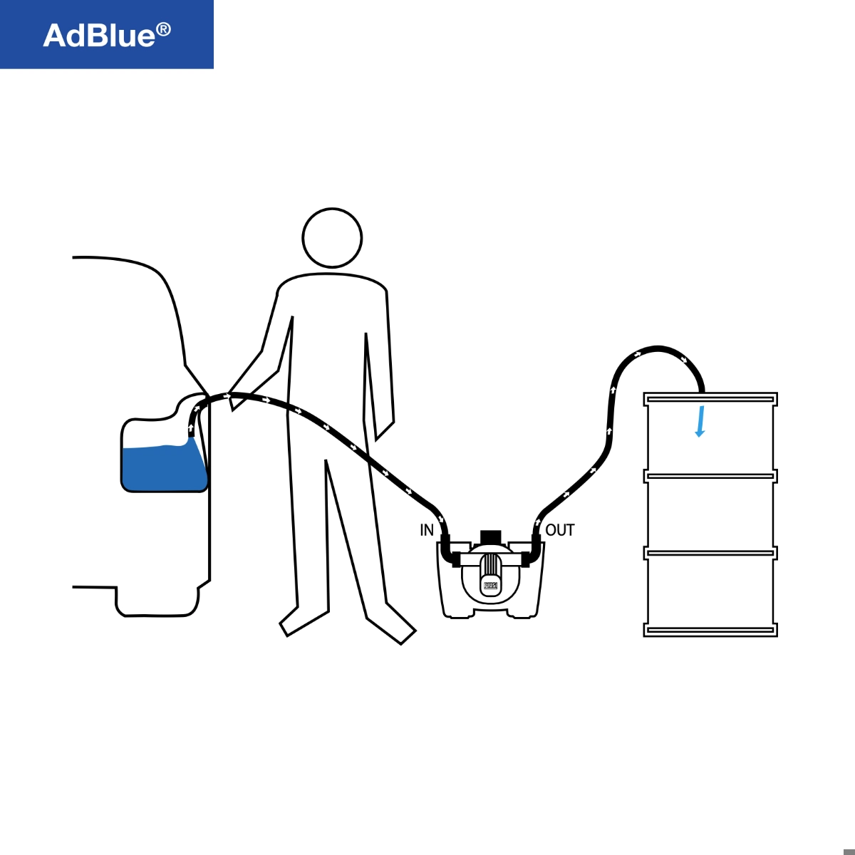 È la soluzione perfetta per chi deve svuotare un serba- toio di un veicolo che contiene AdBlue® prima di sottoporlo a manutenzione. Vie- ne fornito con una scatola portatile che contiene tutte le attrezzature necessarie.