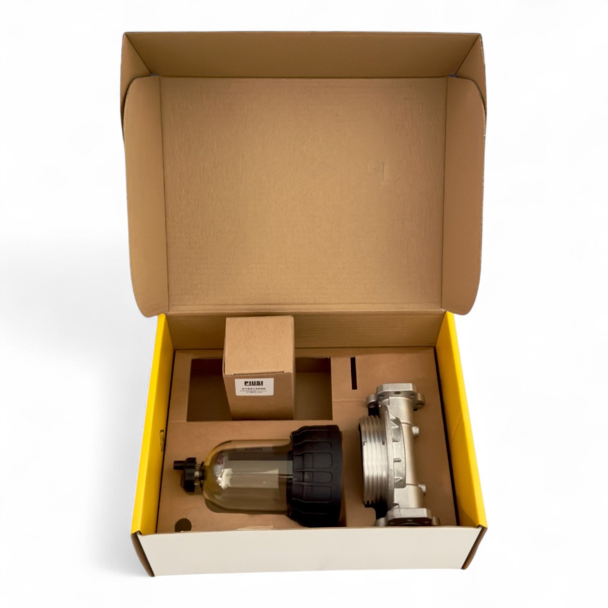 Il filtro a cartuccia Clear Captor è dotato di un contenitore trasparente e di una cartuccia interna removibile, utilizzabile sia in fase di aspirazione che di mandata. È disponibile anche con una cartuccia ad assorbimento d'acqua. Il contenitore trasparente consente di monitorare facilmente il livello di sporco o acqua accumulata nel filtro. Inoltre, una valvola posizionata sul fondo permette di scaricare l'acqua o le impurità decantate, garantendo così un'operatività costante ed efficiente.
