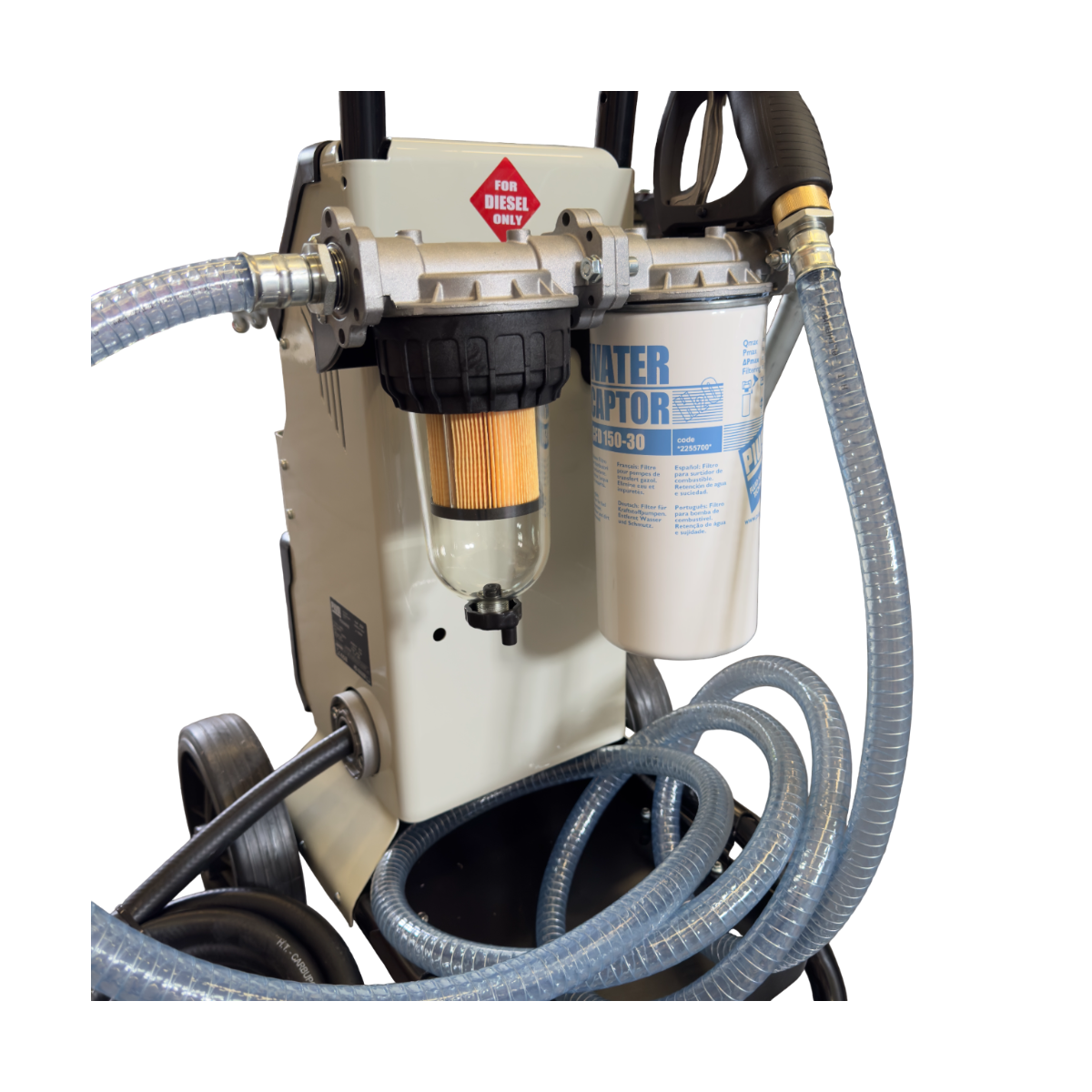 Il funzionamento del sistema Filtroll si basa su una pompa autoadescante ad alte prestazioni (portate fino a 56 l/min per gasolio e 25 l/min per olio) che preleva il fluido dal serbatoio di origine. Il liquido attraversa una sequenza di due filtri specializzati: il primo stadio agisce sulla separazione dell'acqua tramite coalescenza (versione diesel) o particelle grossolane, mentre il secondo stadio effettua una micro-filtrazione profonda fino a 5 micron. Un manometro di precisione installato sulla testata permette all'operatore di verificare in tempo reale la caduta di pressione, segnalando con esattezza quando è necessaria la sostituzione delle cartucce. Questo ciclo continuo di purificazione garantisce un fluido in uscita privo di contaminanti, pronto per i moderni sistemi Common Rail.