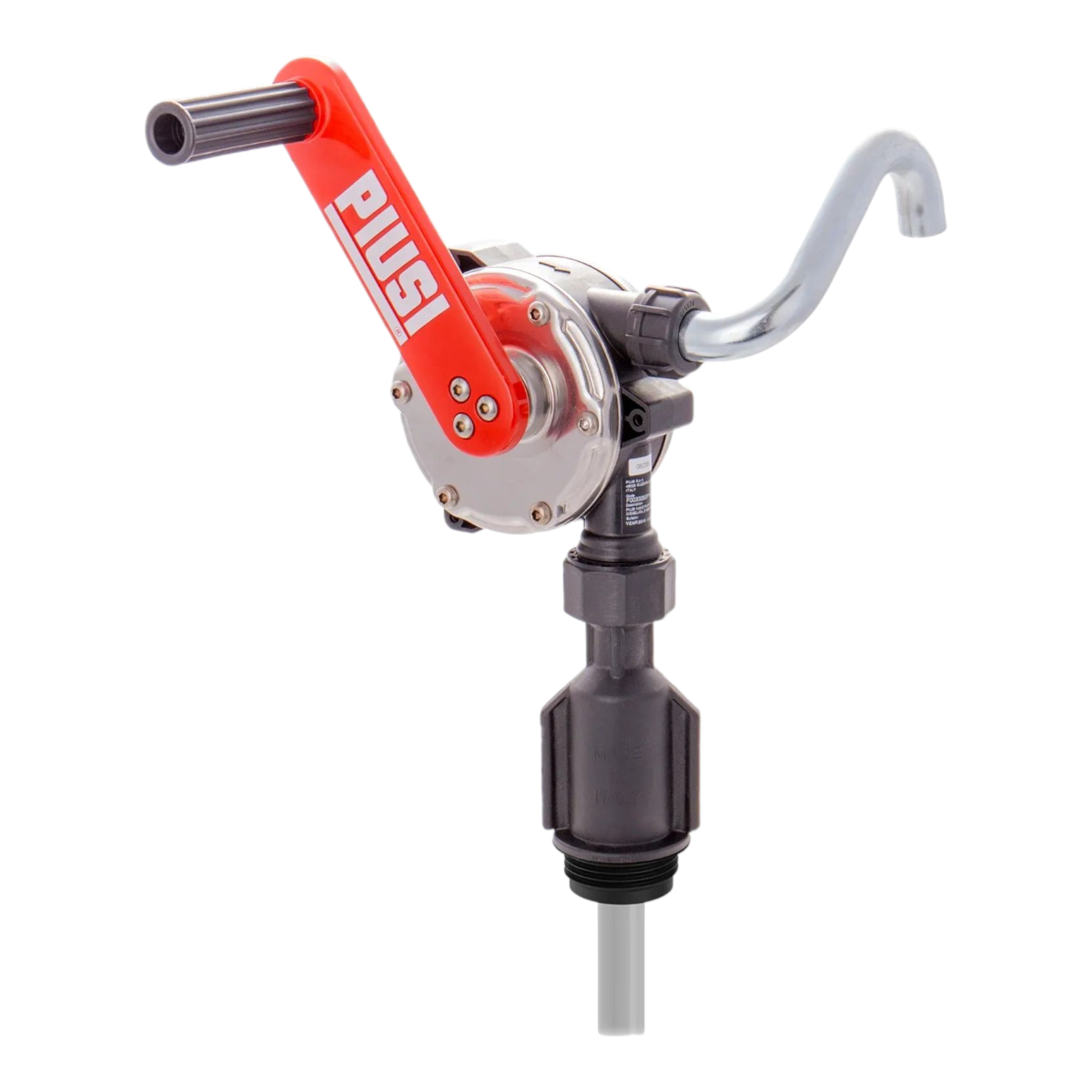 Il funzionamento della PIUSI Hand Pump si basa su un principio rotativo a palette che assicura un flusso costante e senza strappi. L'utente aziona la leva manuale in acciaio, dotata di impugnatura ergonomica antiscivolo, che trasmette il movimento al rotore interno. Grazie alle tolleranze costruttive ridotte e ai materiali autolubrificanti, la pompa è in grado di erogare 38 litri ogni 100 rotazioni, offrendo un'esperienza d'uso fluida e una capacità autoadescante immediata senza necessità di pre-riempimento del tubo.