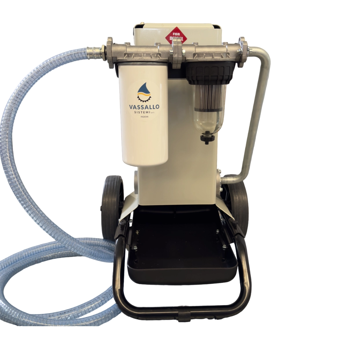 Dotato di doppio sistema di filtrazione, offre una sicurezza eccezionale eliminando le impurità e l'acqua presenti nel carburante. Il telaio montato su carrello, dotato di grandi ruote, assicura una facilità di trasporto e manovrabilità, mentre la leggerezza complessiva di soli 35kg lo rende ideale per un utilizzo versatile in vari contesti.